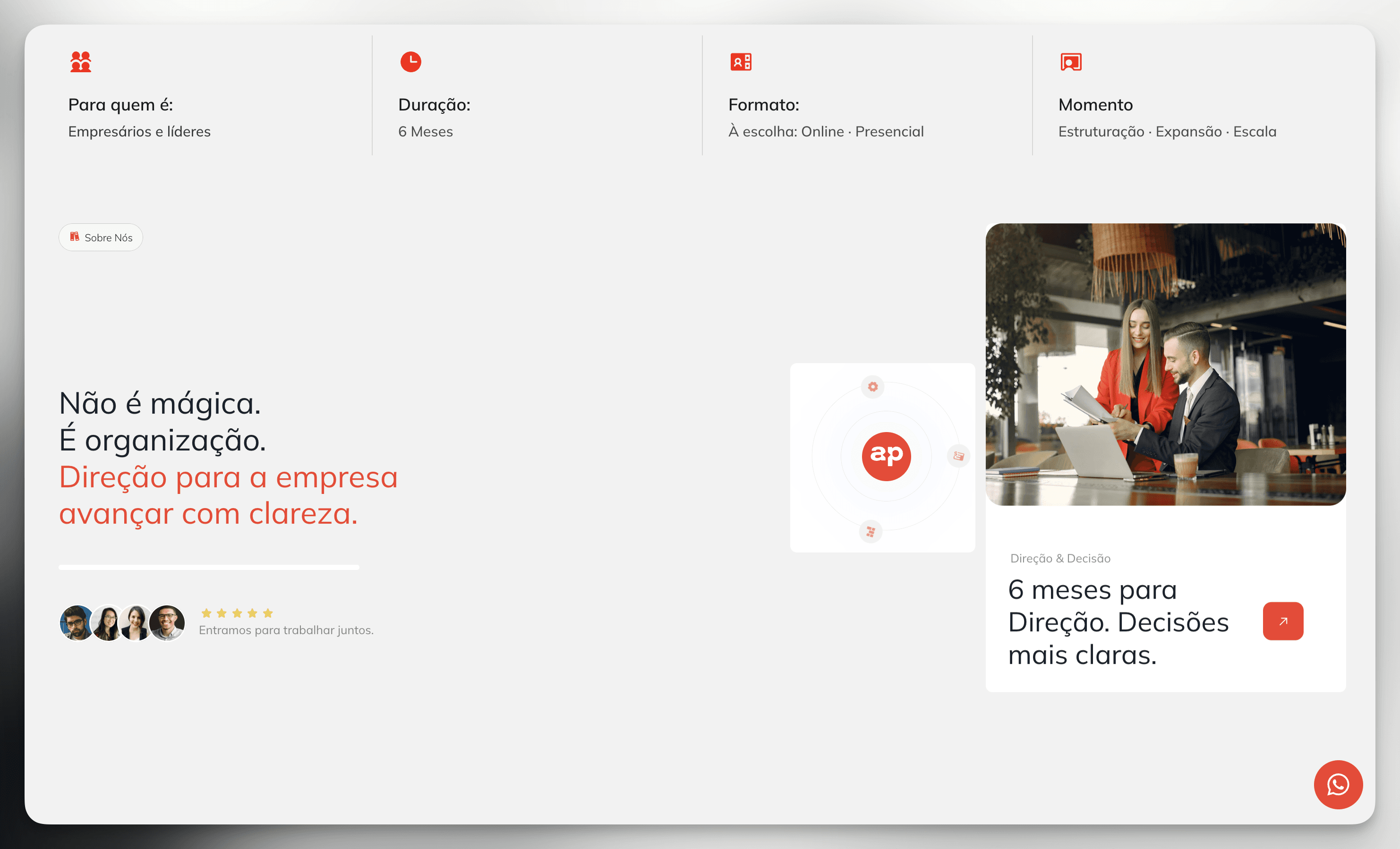 A proposta foi desenvolver uma experiência visual limpa, estratégica e funcional, capaz de comunicar o valor da marca de forma mais clara e profissional.