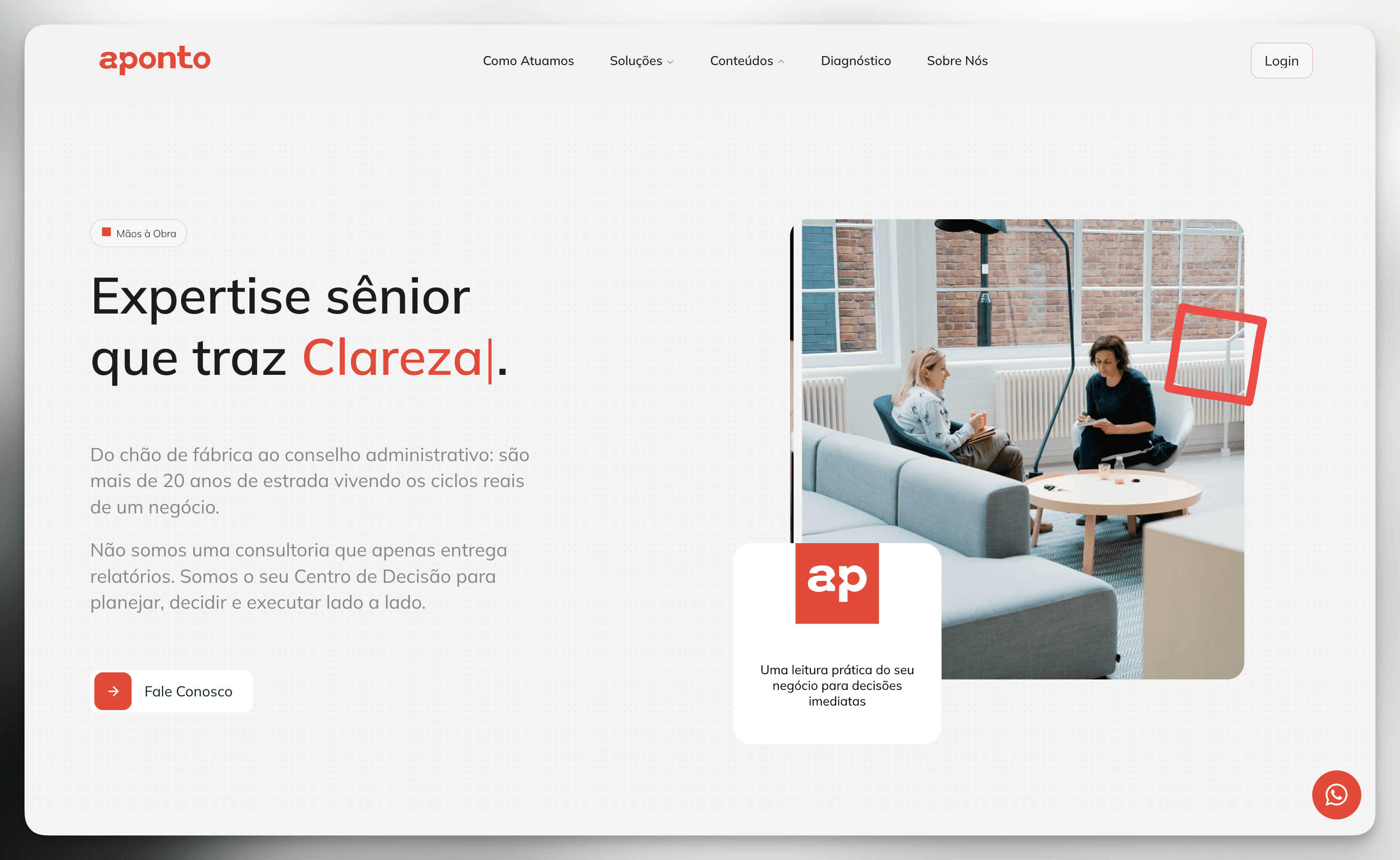 Projeto de website institucional criado para a Aponto, com foco em transmitir autoridade, confiança e posicionamento no ambiente digital.
